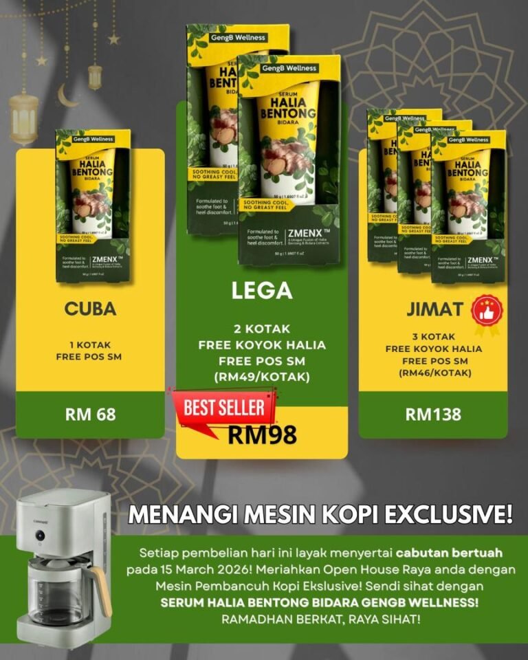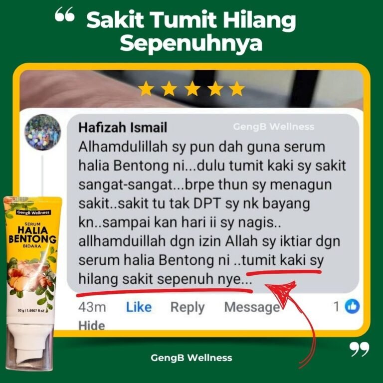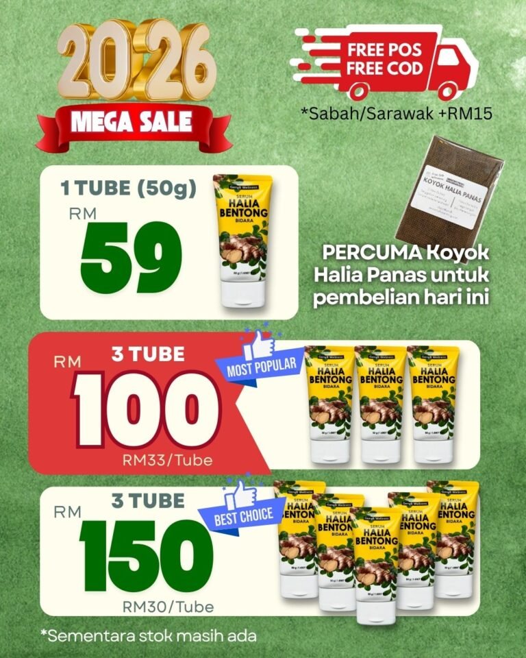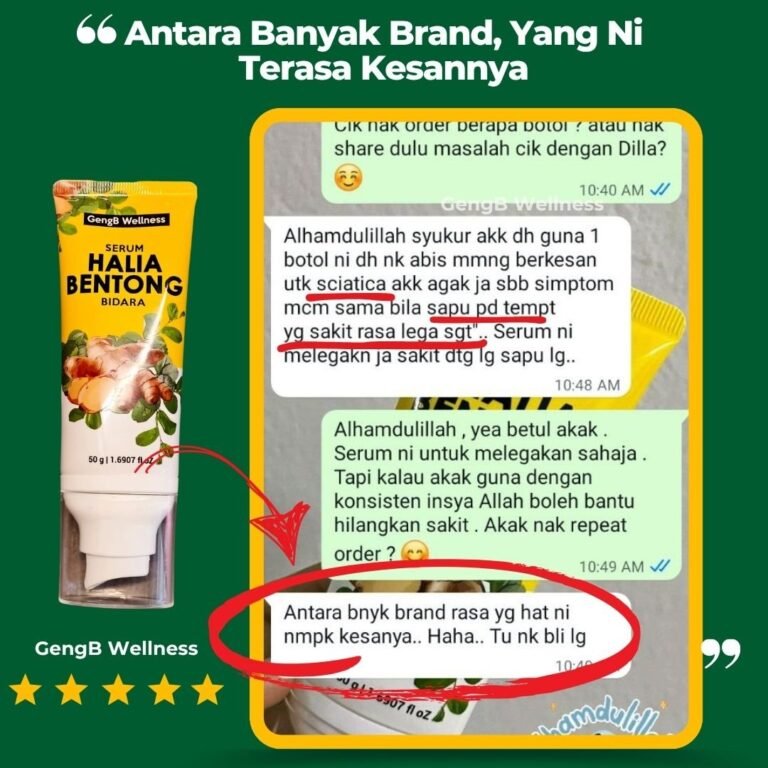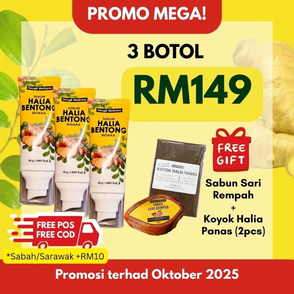 Harga Promosi akan ditamatkan pada bila-bila masa sahaja. Pilih Untuk Sihat, Tingkatkan Kualiti Hidup tanpa masalah Gout bersama SERUM HALIA BENTONG hari ini. Anda hanya 1 klik dari ikhtiar sihat.