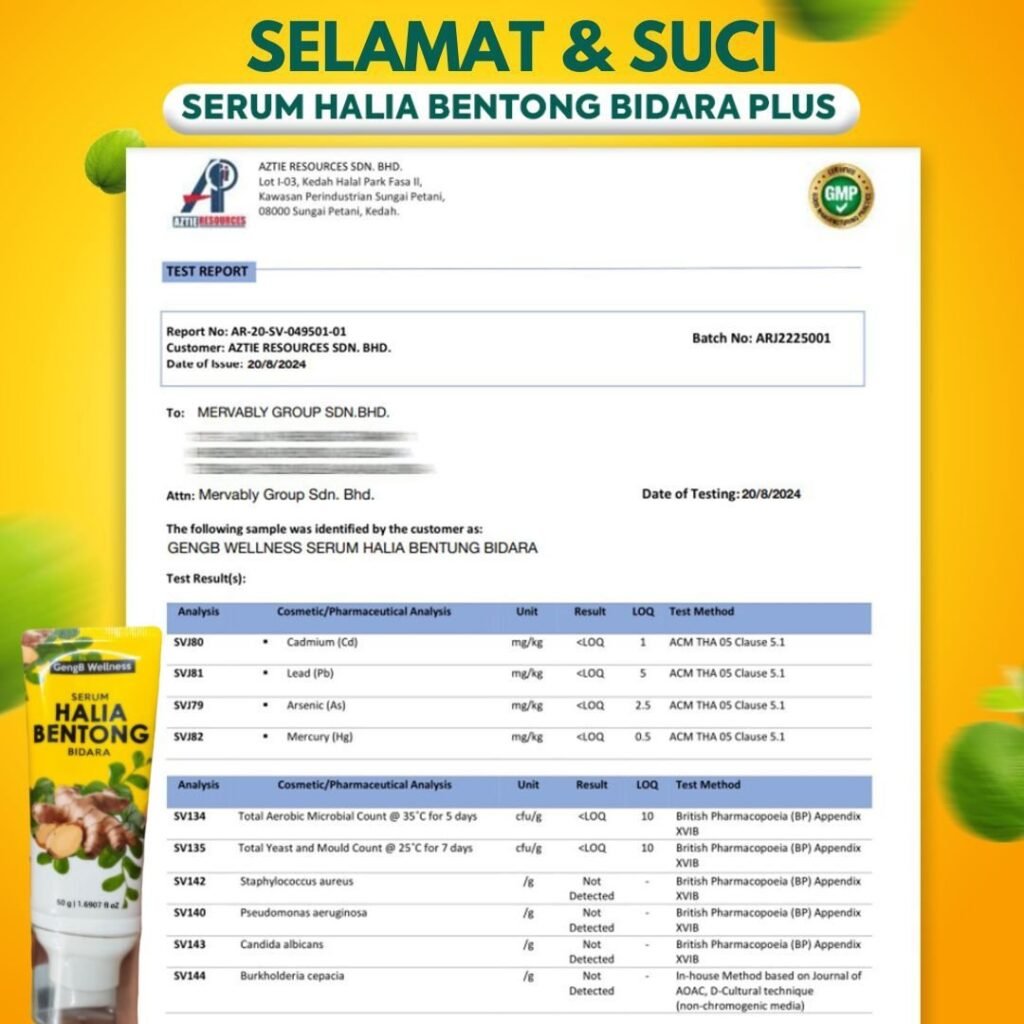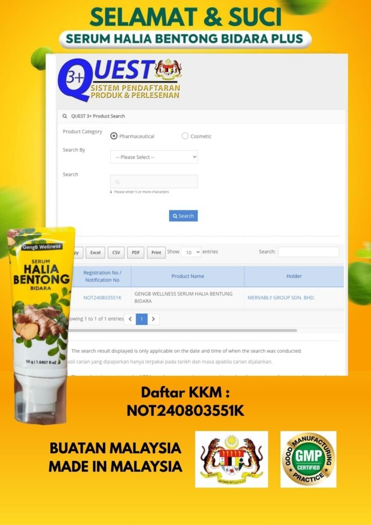 Amalkan SERUM HALIA BENTONG 2 -3 kali sehari waktu pagi dan malam sebelum tidur.
